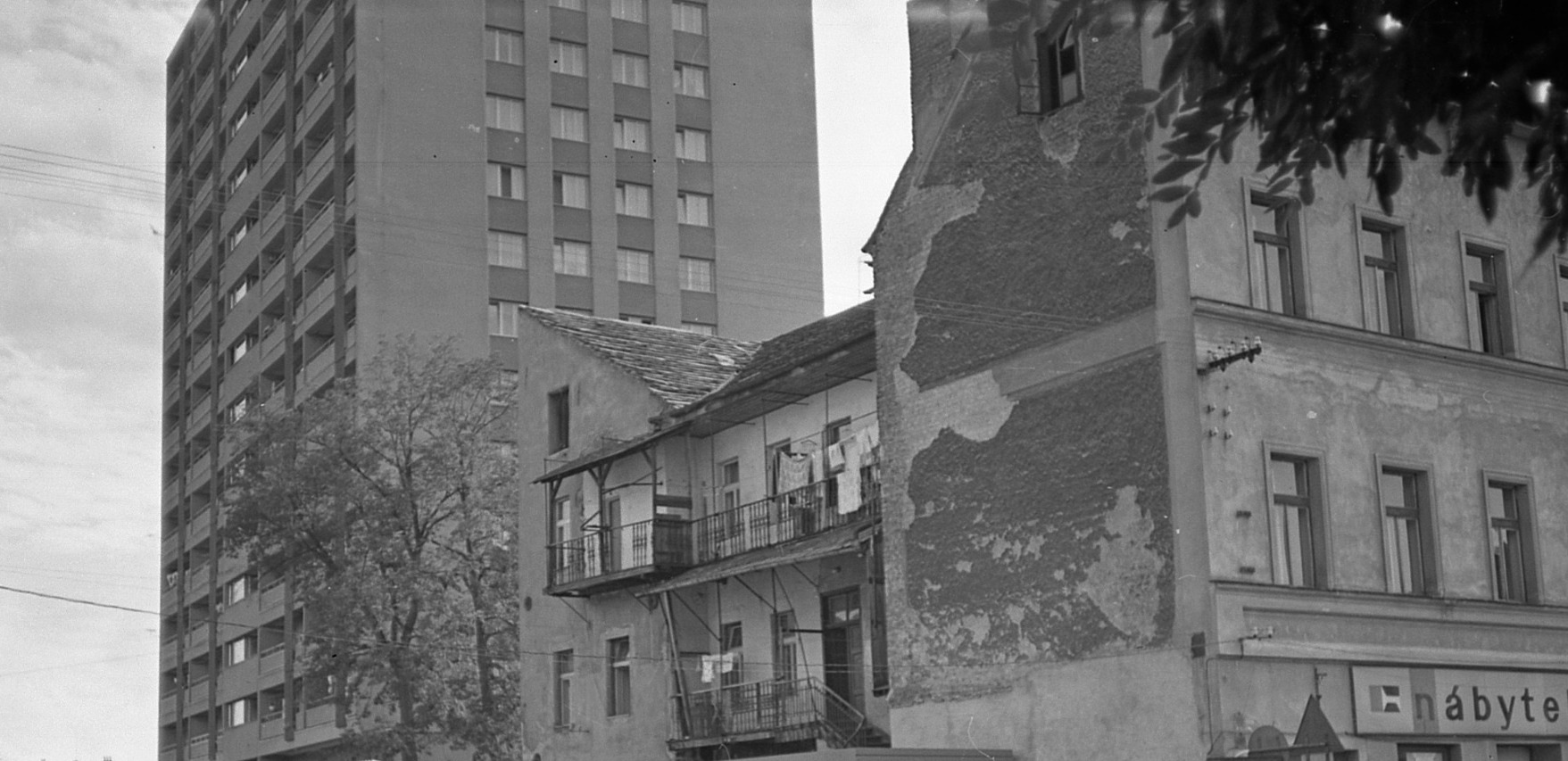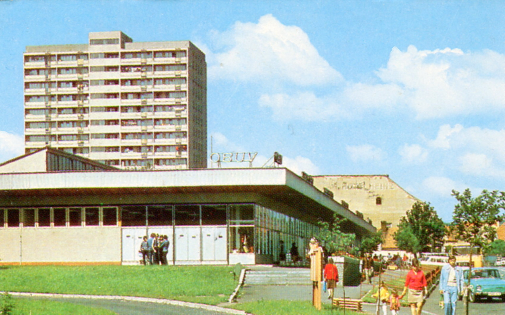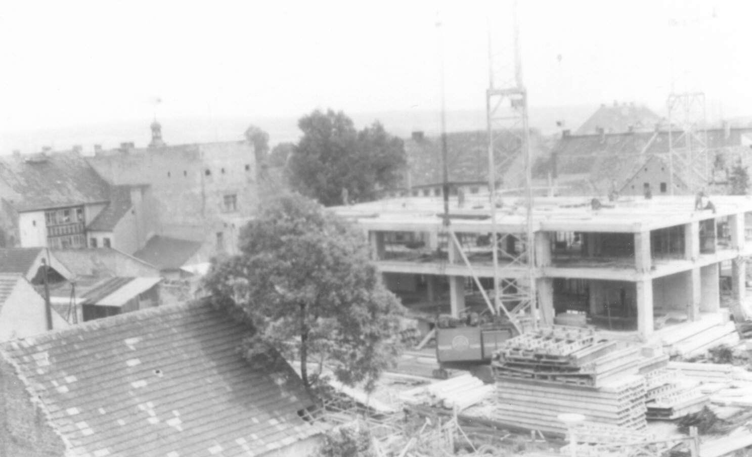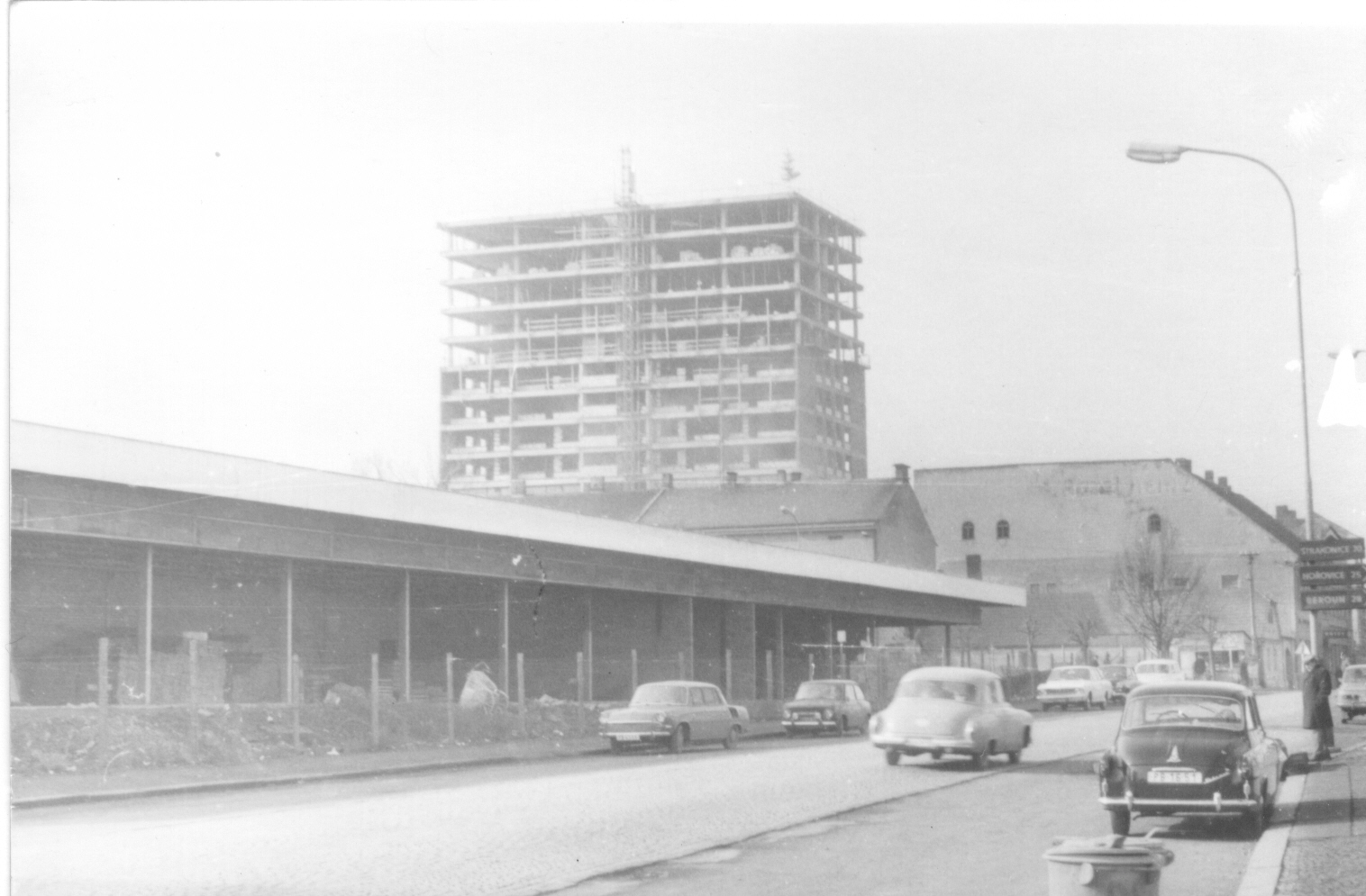 Město se neměnilo jen díky stavbě čtrnáctipatráku, ale i výstavbě nového obchodního domu v Pražské. Pro naše město mělo toto rozhodnutí ty následky, že jsme přišli o nejkrásnější domy které se nacházely v Pražské ulici. Místní mu trefně začali říkat kravín. V pozadí jde dobře vidět náš dům, který již dosáhl požadované výšky, ale ještě má daleko k dokončení.