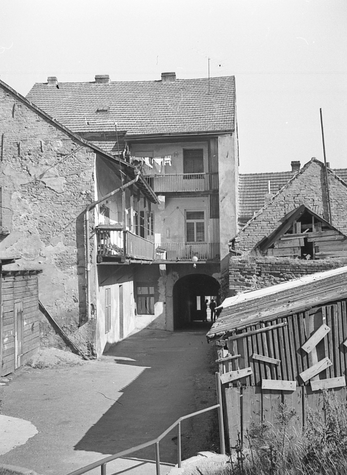 Když bylo jisté, že domy před čtrnáctipatrákem nepadnou, byl skrze jeden dvůr vytvořen přímí průchod na náměstí. Jednalo se o tento dům, který byl po r. 1993 vrácen původním majitelům, kteří sice po určitý čas dovolili obyvatelů dál skrz dvůr chodit, ale nakonec byl uzavřen.